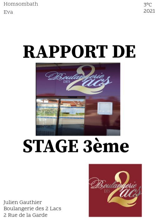 Durant mon année de 3ème, ma dernière année de collège, j’ai eu la chance, malgré les événements récents, le 25 et 27 janvier 2021 d'effectuer un stage de deux jours au sein de l’entreprise : Boulangerie des 2 Lacs .