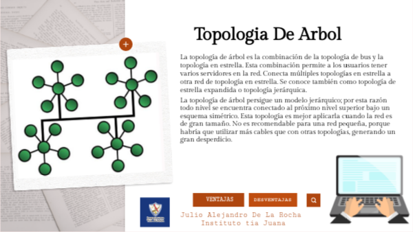 La topología de árbol es la combinación de la topología de bus y la topología en estrella. Esta combinación permite a los usuarios tener varios servidores en la red. Conecta múltiples topologías en estrella a otra red de topología en estrella. Se conoce también como topología de estrella expandida o topología jerárquica.