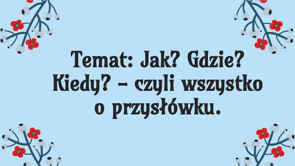 Temat: Jak? Gdzie? Kiedy? - czyli wszystko o przysłówku.
