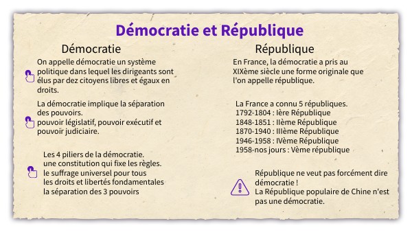 En France, la démocratie a pris au XIXème siècle une forme originale que l'on appelle république.