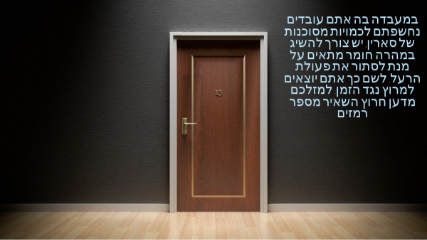 כמעט סיימתם, כבר אפשר להריח את הסוף...פתרו את כתב החידה ומיצאו את דרכם אל היציאה