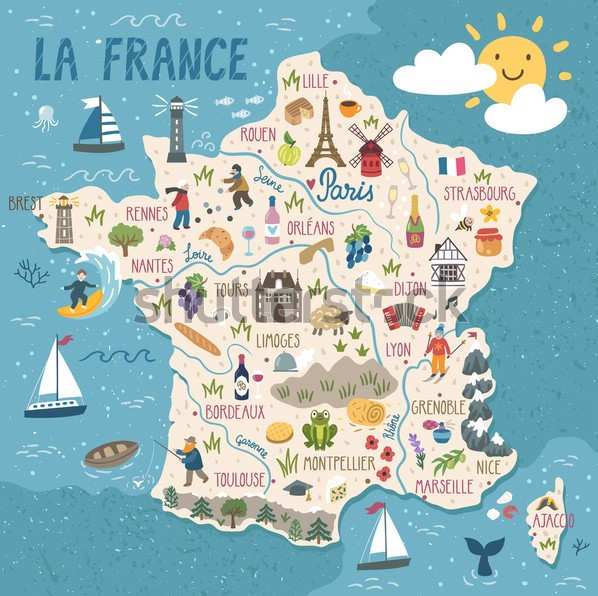 Una Carta Tematica con alcune curiosita' riguardanti la Francia e alciune sue localita'