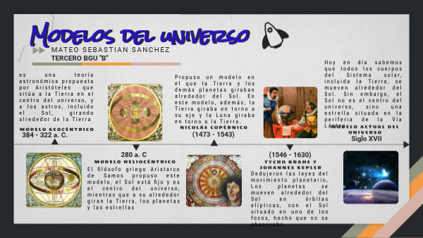 El filósofo griego Aristarco de Samos propuso este modelo, el Sol está fijo y es el centro del universo, mientras que a su alrededor giran la Tierra, los planetas y las estrellas
