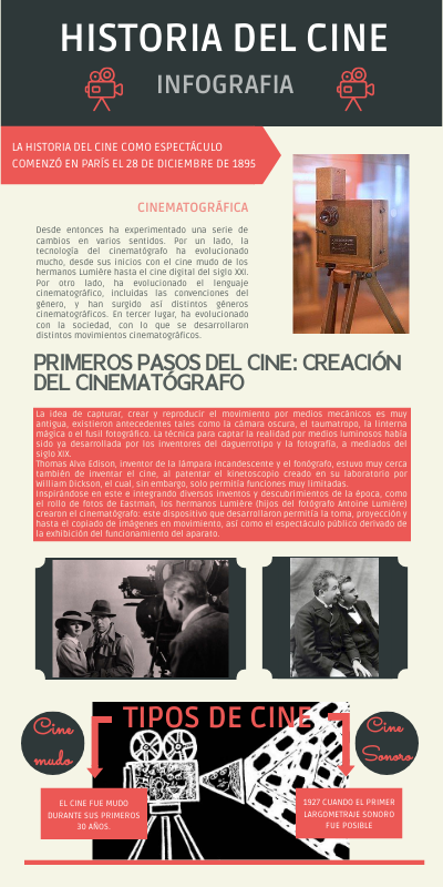 La idea de capturar, crear y reproducir el movimiento por medios mecánicos es muy antigua, existieron antecedentes tales como la cámara oscura, el taumatropo, la linterna mágica o el fusil fotográfico. La técnica para captar la realidad por medios luminosos había sido ya desarrollada por los inventores del daguerrotipo y la fotografía, a mediados del siglo XIX. Thomas Alva Edison, inventor de la lámpara incandescente y el fonógrafo, estuvo muy cerca también de inventar el cine, al patentar el kinetoscopio creado en su laboratorio por William Dickson, el cual, sin embargo, solo permitía funciones muy limitadas. Inspirándose en este e integrando diversos inventos y descubrimientos de la época, como el rollo de fotos de Eastman, los hermanos Lumière (hijos del fotógrafo Antoine Lumière) crearon el cinematógrafo: este dispositivo que desarrollaron permitía la toma, proyección y hasta el copiado de imágenes en movimiento, así como el espectáculo público derivado de la exhibición del funcionamiento del aparato.