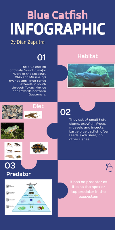 They eat of small fish, clams, crayfish, frogs, mussels and insects. Large blue catfish often feeds exclusively on other fishes.