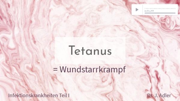 - Erreger: Clostridium tetani -> Anaerobes Stäbchenbakterium - Bildet Tetanospasmin – das zweitstärkste bekanntes Bakterientoxin - Vorkommen: Tetanus-Sporen kommen überall vor, z.B. Straßenstaub, GartenerdeBesiedlung von offenen Wunden, insbesondere tiefe, sauerstoffarme Bereiche (Anaerob!)