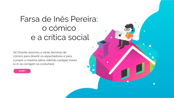 onde, segundo o Anjo, seguramente terá lugar, já que "em todos [seus] fazeres, / per malícia não [errou]". Na Farsa de Inês Pereira, o cómico tem dois objetivos essenciais. Serve, dada a natureza da farsa, para provocar o riso, através do qual se castigam os costumes, os vícios. Por outro lado, marca o claro contraste entre as personagens e as situações por elas vividas.