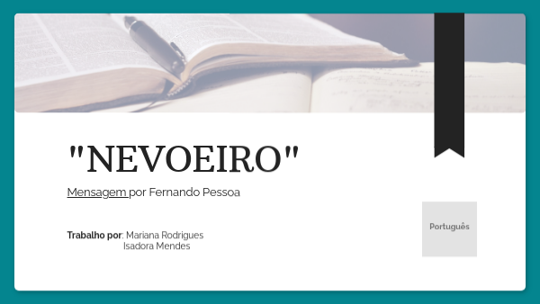 Nem rei nem lei, nem paz nem guerra, Define com perfil e ser Este fulgor baço da terra Que é Portugal a entristecer — Brilho sem luz e sem arder Como o que o fogo-fátuo encerra. Ninguém sabe que coisa quer. Ninguém conhece que alma tem, Nem o que é mal nem o que é bem. (Que ânsia distante perto chora?) Tudo é incerto e derradeiro. Tudo é disperso, nada é inteiro. Ó Portugal, hoje és nevoeiro... É a hora! Valete, Fratres.