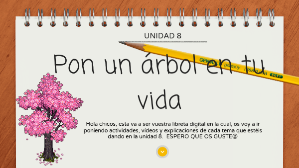 Hola chicos, esta va a ser vuestra libreta digital en la cual, os voy a ir poniendo actividades, vídeos y explicaciones de cada tema que estéis dando en la unidad 8. ESPERO QUE OS GUSTE😜