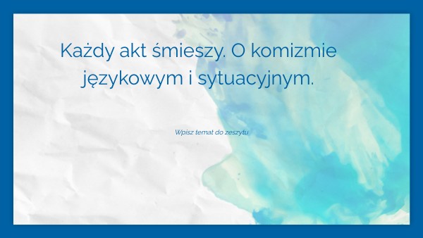 Każdy akt śmieszy. O komizmie językowym i sytuacyjnym.