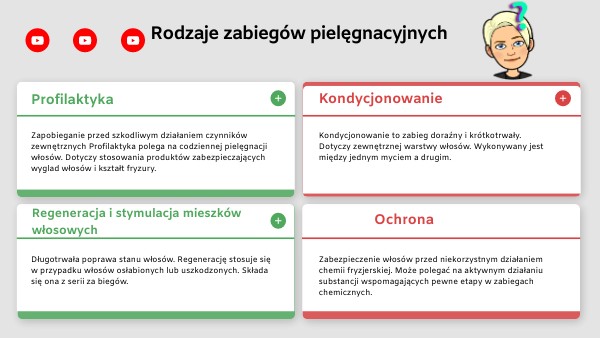 Kondycjonowanie to zabieg doraźny i krótkotrwały. Dotyczy zewnętrznej warstwy włosów. Wykonywany jest między jednym myciem a drugim.