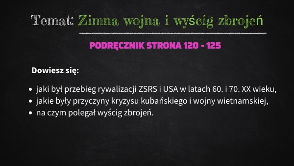 Temat: Zimna wojna i wyścig zbrojeń
