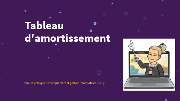 Consigne : par groupe de deux, calculez votre propre tableau d'amortissement à l'aide du logiciel EXCEL en inventant une situation de crédit de financement (voiture ou autre)