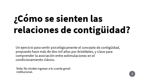 Un ejercicio para sentir psicológicamente el concepto de contigüidad, propuesto hace más de dos mil años por Aristóteles, y clave para comprender la asociación entre estimulaciones en el condicionamiento clásico.