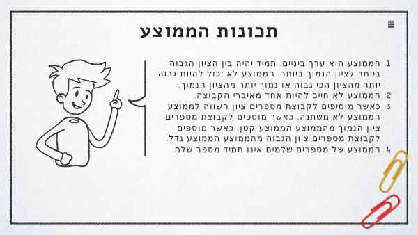 - הממוצע לא חייב להיות אחד מאיברי הקבוצה.