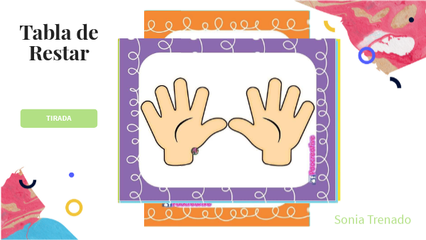 Tabla de restar aleatoria con dedos para PDI en 5 años de Ed. Infantil. Creada gracias a Villamates y Escape. Dar al botón de "Tirada", apretar en el imagen que salga y te llevará a una resta que hay que solucionar. Una vez solucionada dale a la "casita" y vuelves a la página de comienzo.
