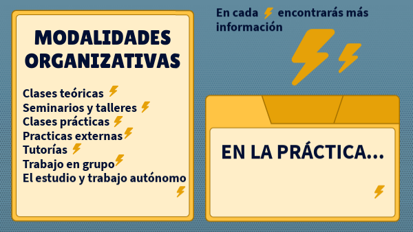 Clases teóricas Seminarios y talleres Clases prácticas Practicas externas Tutorías Trabajo en grupo El estudio y trabajo autónomo