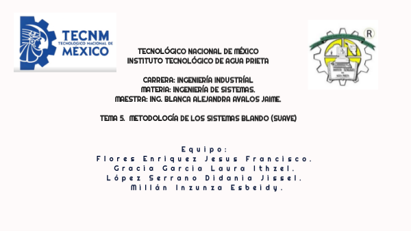 TECNOLÓGICO NACIONAL DE MÉXICOINSTITUTO TECNOLÓGICO DE AGUA PRIETA Carrera: Ingeniería Industríal Materia: Ingeniería de sistemas. Maestra: Ing. Blanca Alejandra Avalos Jaime. Tema 5. Metodología de los Sistemas Blando (suave)