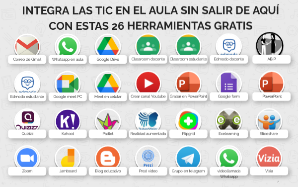 INTEGRA LAS TIC EN EL AULA SIN SALIR DE AQUÍCON ESTAS 26 HERRAMIENTAS GRATIS
