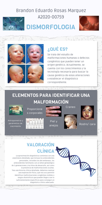 Se trata del estudio de malformaciones humanas o defectos congénitos que pueden tener un origen genético. Actualmente, se cuenta con los conocimientos y la tecnología necesaria para buscar la causa genética de estas alteraciones y establecer el diagnóstico correspondiente.