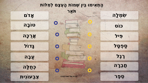 פתרון-הַתְאִימוּ בֵּין שְׁמוֹת הָעֶצֶם לְמִלּוֹת תֹּאַר