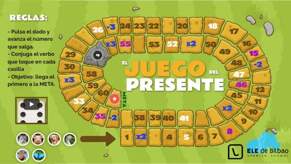- Pulsa el dado y avanza el número que salga. - Conjuga el verbo que toque en cada casilla - Objetivo: llega el primero a la META.