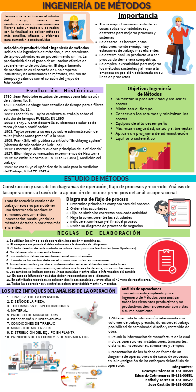 Tecnica que se enfoca en el estudio del trabajo, basada en registros, análisis y proyecciones para llevar a cabo un trabajo u operación con la finalidad de aplicar métodos más sencillos, eficaces y eficientes para aumentar la productividad