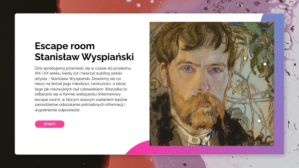 Dziś spróbujemy przenieść się w czasie do przełomu XIX i XX wieku, kiedy żył i tworzył wybitny polski artysta - Stanisław Wyspiański. Dowiemy się co nieco na temat jego młodości, twórczości, a także tego jak niezwykłym był człowiekiem. Wszystko to odbędzie się w formie webquestu (internerowy escape room), w którym waszym zadaniem będzie samodzielne odszukanie potrzebnych informacji i wypełnienie odpowiedzi.