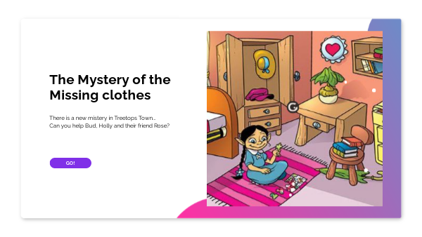 This is Rose, she is from Flower Town. She is visiting Bud and Holly. Her wardrobe is empty! All her clothes disappeared! What happened to her clothes? Follow the clues and help her get new clothes!