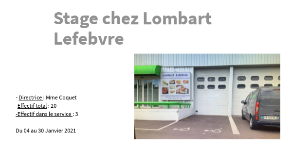 Stage chez Lombart Lefebvre Magasin principalement d'alimentation pour : - Les professionnels -Les particuliers