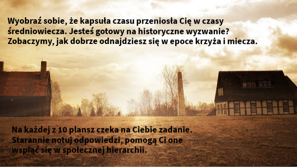 Wyobraź sobie, że kapsuła czasu przeniosła Cię w czasy średniowiecza. Jesteś gotowy na historyczne wyzwanie? Zobaczymy, jak dobrze odnajdziesz się w epoce krzyża i miecza.