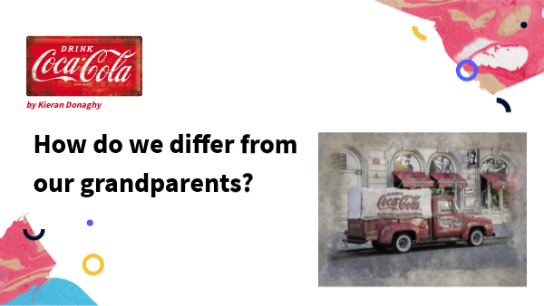 The Coca Cola advert "Grandpa" shows that the lifestyle enjoyed by our grandparents - moving more, eating well, taking it easy can be beneficial. It intends to raise awareness of the importance of enery balance and helping people to make informed choices. Its the way to make more people aware of the need for a balanced diet and active healthy lifestyle.