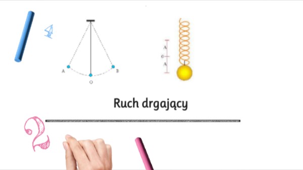 Notatka w zeszycie: a) Ruch drgający polega na okresowych wychyleniach ciała z położenia równowagi. b) Wielkości charakteryzujące drgania: – amplituda – największe wychylenie z położenia równowagi (symbol: A, jednostka: metr) – okres drgań – czas jednego pełnego drgania (symbol: T, jednostka: sekunda) – częstotliwość – ilość pełnych drgań w czasie 1 sekundy (symbol: f, jednostka: Hz (herc)) częstotliwość jest odwrotnością okresu: f = 1/T herc jest odwrotnością sekundy: Hz = 1/s