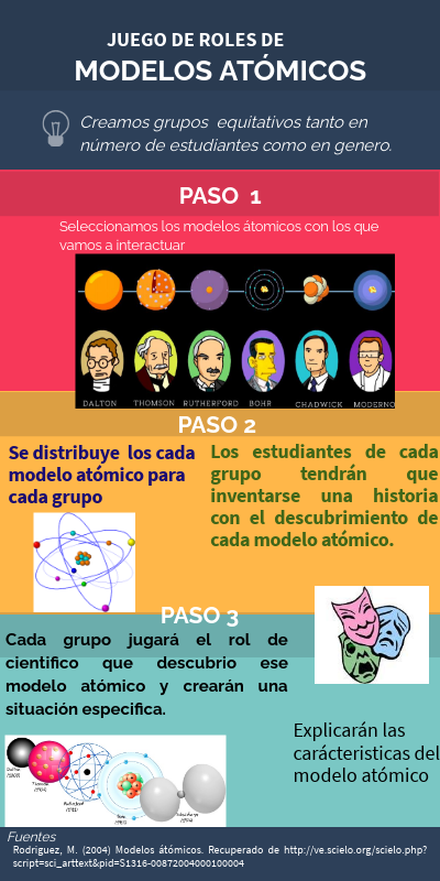 Cada grupo jugará el rol de cientifico que descubrio ese modelo atómico y crearán una situación especifica.