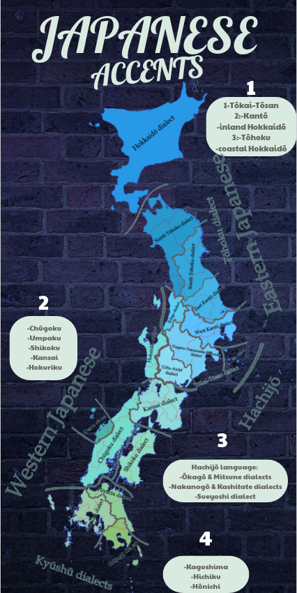 Hachijō language: -Ōkagō & Mitsune dialects -Nakanogō & Kashitate dialects -Sueyoshi dialect