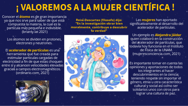 Es importante tomar en cuenta las opiniones y aportaciones de todos los integrantes al hacer descubrimientos en la ciencia; teniendo respeto sin importar el género, etnia u otra característica cultural y social así como ser solidarios unos con otros para lograr una cultura de paz.