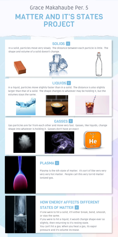 If one were to hit a solid, it'll either break, bend, smoosh, or stay the same.If you were to hit a liquid, it would change shape ever so slightly, then returning to it's resting state. You can't hit a gas. When you heat a gas, its vapor pressure and it's volume increase.