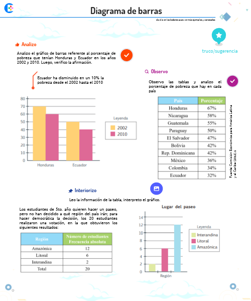 Analizo el gráfico de barras referente al porcentaje de pobreza que tenían Honduras y Ecuador en los años 2002 y 2010. Luego, verifico la afirmación.