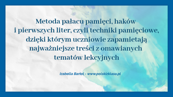 Metoda pałacu pamięci, haków i pierwszych liter, czyli techniki pamięciowe, dzięki którym uczniowie zapamietają najważniejsze treści z omawianych tematów lekcyjnych