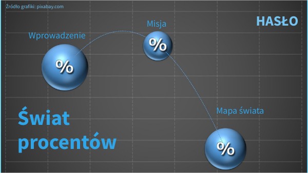 Świat procentów jest bardzo rozległy. Spotykasz je w sklepie, banku, w codziennym życiu. Nie sposób żyć bez nich! Jeśli potrafisz się nimi posługiwać, Twoja codzienność staje się o wiele łatwiejsza. Ruszaj do zabawy. Kolejne wyzwania czekają :)