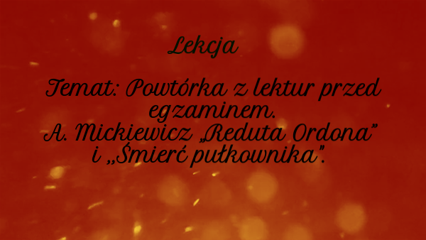 Temat: Powtórka z lektur przed egzaminem. A. Mickiewicz „Reduta Ordona” i ,,Śmierć pułkownika".