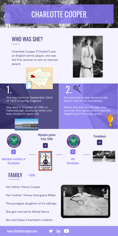 Charlotte Cooper ("Chattie") was an English tennis player, she was the first woman to win an olympic award.