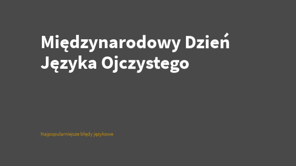 Z tej okazji zapraszamy do obejrzenia prezentacji o błędach językowych, które najczęściej pojawiają się w języku polskim. Materiał zawarty w prezentacji będzie wykorzystany w konkursie językowym, który odbędzie się online w czwartek o godz. 14:00.