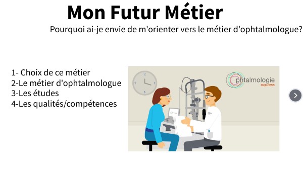 1- Choix de ce métier2-Le métier d'ophtalmologue 3-Les études 4-Les qualités/compétences