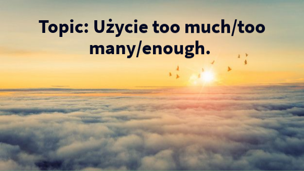 - używamy aby wyrazić, że czegoś jest za dużo too much - używamy z rzeczownikami niepoliczalnymi It`s too much food. too many - używamy z rzeczownikami policzalnymi There were too many chairs in this room.