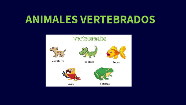 Los animales vertebrados son todos aquellos que tienen cráneo, cola, y una espina dorsal o columna vertebral, que divide su cuerpo en dos partes iguales (simetria bilateral) Su esqueleto es interno y puede ser óseo o cartilaginoso.