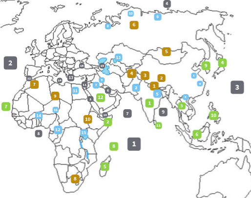 Asia e Africa cartina muta interattiva