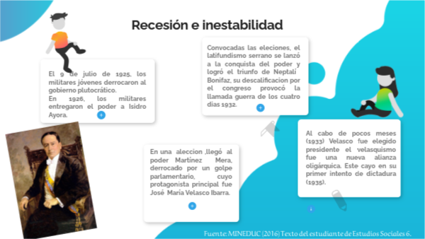 En una aleccion ,llegó al poder Martínez Mera, derrocado por un golpe parlamentario, cuyo protagonista principal fue José María Velasco Ibarra.