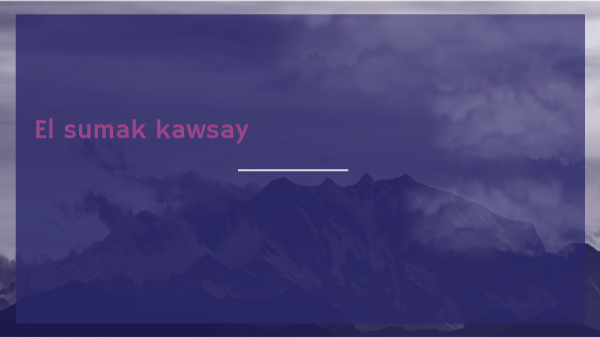 Es una concepción andina ancestral de la vida que se ha mantenido vigente en muchas comunidades indígenas hasta la actualidad. Sumak significa lo ideal, lo hermoso, lo bueno, la realización; y kawsay, es la vida, en referencia a una vida digna, en armonía y equilibrio con el universo y el ser humano, en síntesis el sumak kawsay significa la plenitud de la vida.