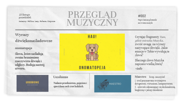 Czytając fragmenty Tam, gdzie mieszka Muzyka, zwróć uwagę na wyrazy nazywające dźwięki. Jakie emocje w Tobie wywołują te słowa? Dlaczego słowo Muzyka zapisano wielką literą?